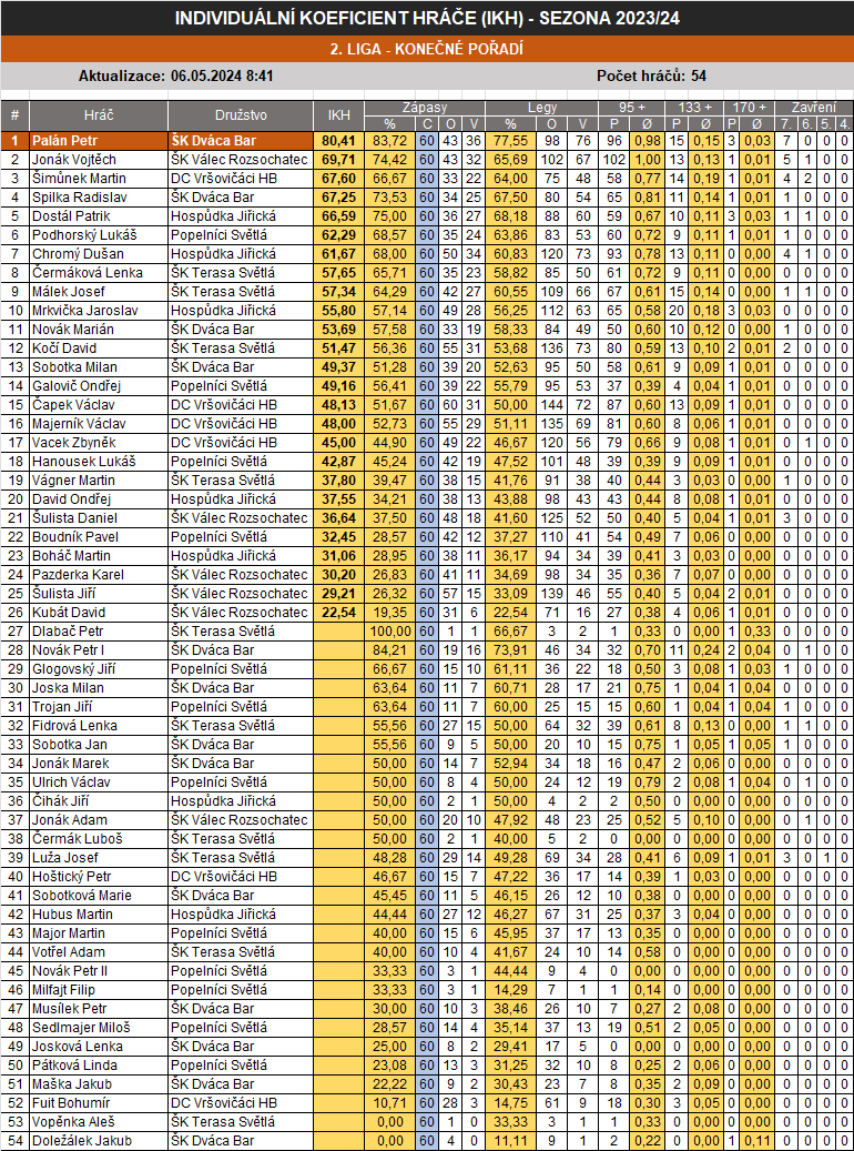 V průběžném pořadí jsou týmy řazeny dle skóre/legů.