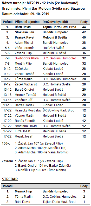 12. Pohár města Světlá ZAVÍRÁK