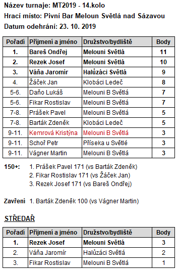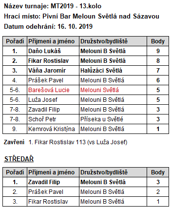 13. Pohár města Světlá ZAVÍRÁK