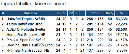 Sezona 2007/2008 - Pivní liga týmů v šipkách Vysočiny
